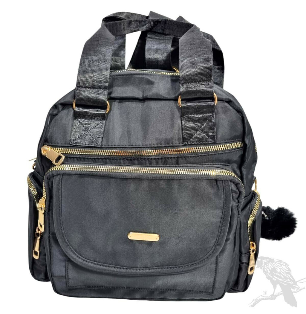 É produzida em nylon, as alças são ajustáveis e removíveis. Possui 2 bolsos com zíper e 1 bolso trazeiro com zíper.